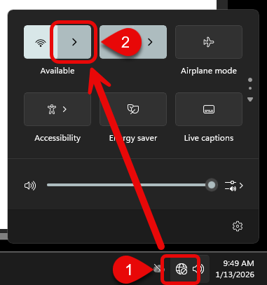 2) From the menu that appears, select the arrow next to the WIFI symbol.