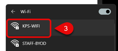 3) Select KPS-WIFI from the list of available WIFI networks.