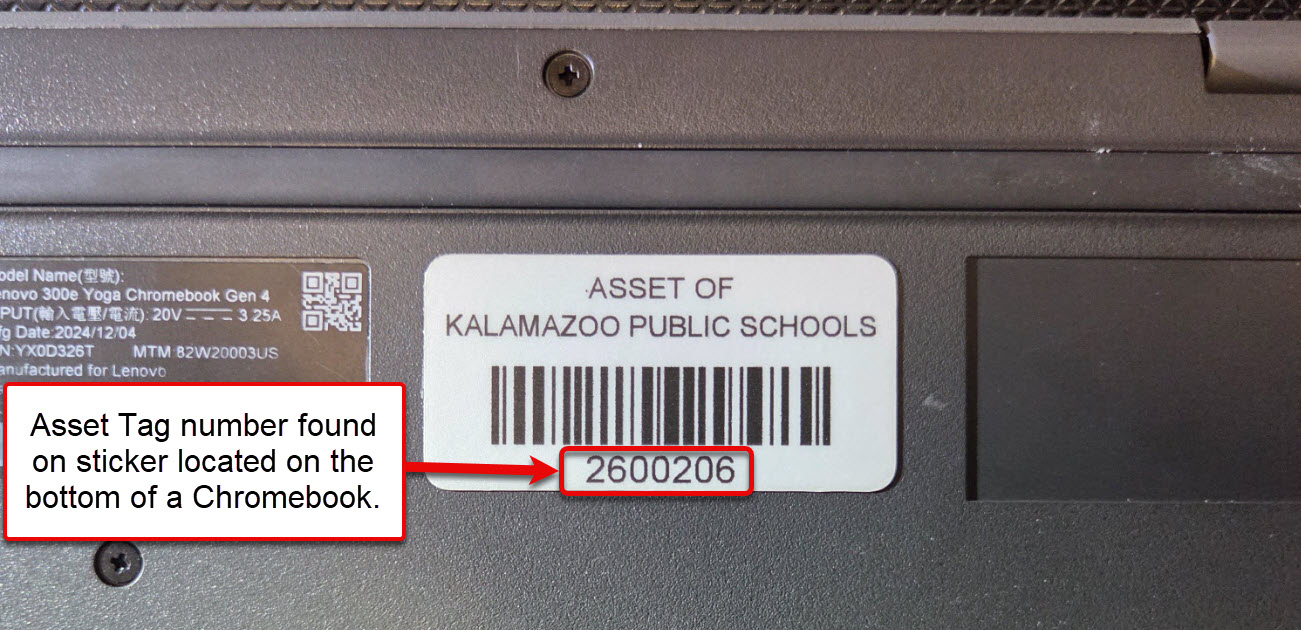 Where the Asset Tag can be found depends on the device. Let's cover the most common devices in-use throughout the district: PCs, Chromebooks, & Laptops.